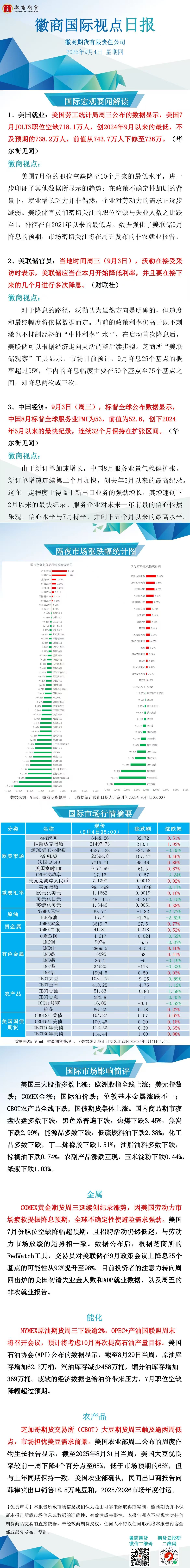 【徽商资讯】徽商国际视点日报(2025年9月4日)