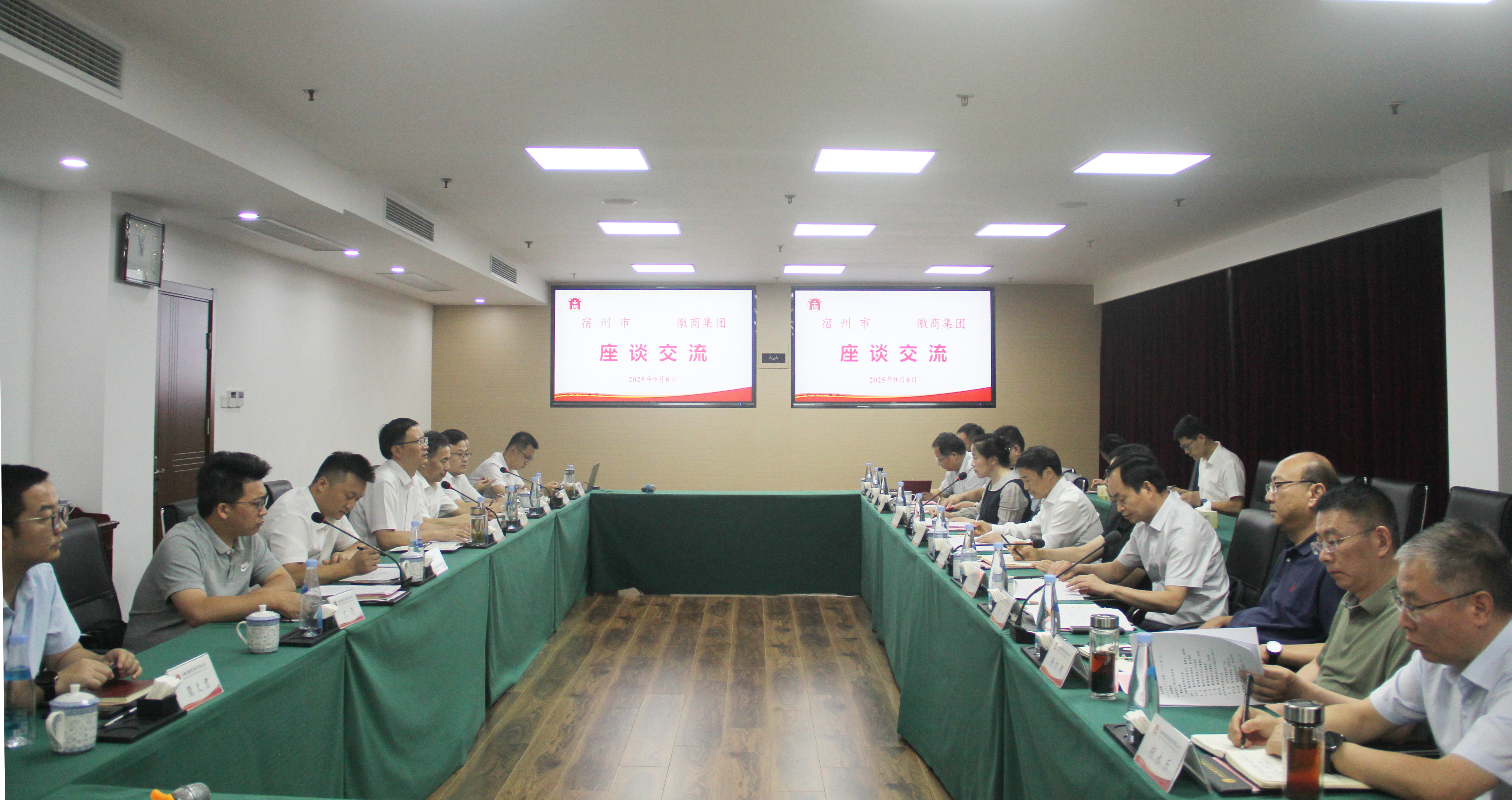 杨群山向任东一行表示欢迎,简要介绍了徽商集团基本情况、发展思路和业务板块。座谈中,主宾双方认为,宿州市与徽商集团合作有机会、有潜力,前景和空间广阔。希望结合宿州市产业布局和集团业务需求,建立常态化沟通机制,发挥地企各自优势,围绕物流园区运营、冷链物流、大宗供应链业务、现代农业综合服务、能源保供、进出口贸易、商业资产运作等方面,找准切入领域,寻求合作机会,推动成果落地,为加快皖北地区全面振兴贡献合力。