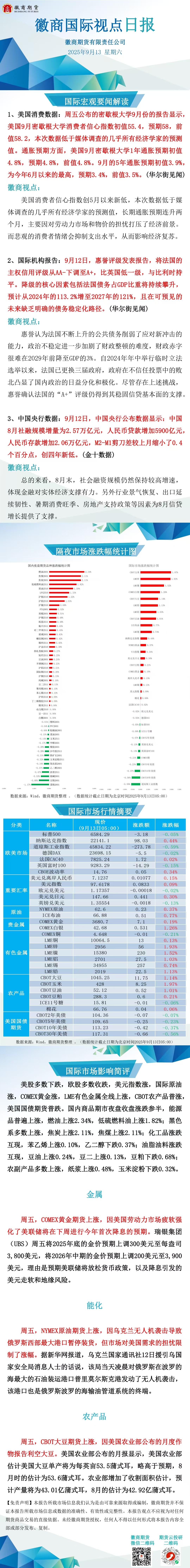 【徽商资讯】徽商国际视点日报(2025年9月13日)