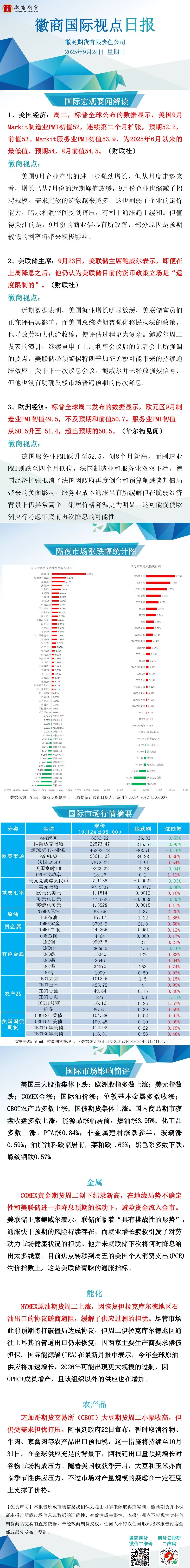 【徽商资讯】徽商国际视点日报(2025年9月24日)