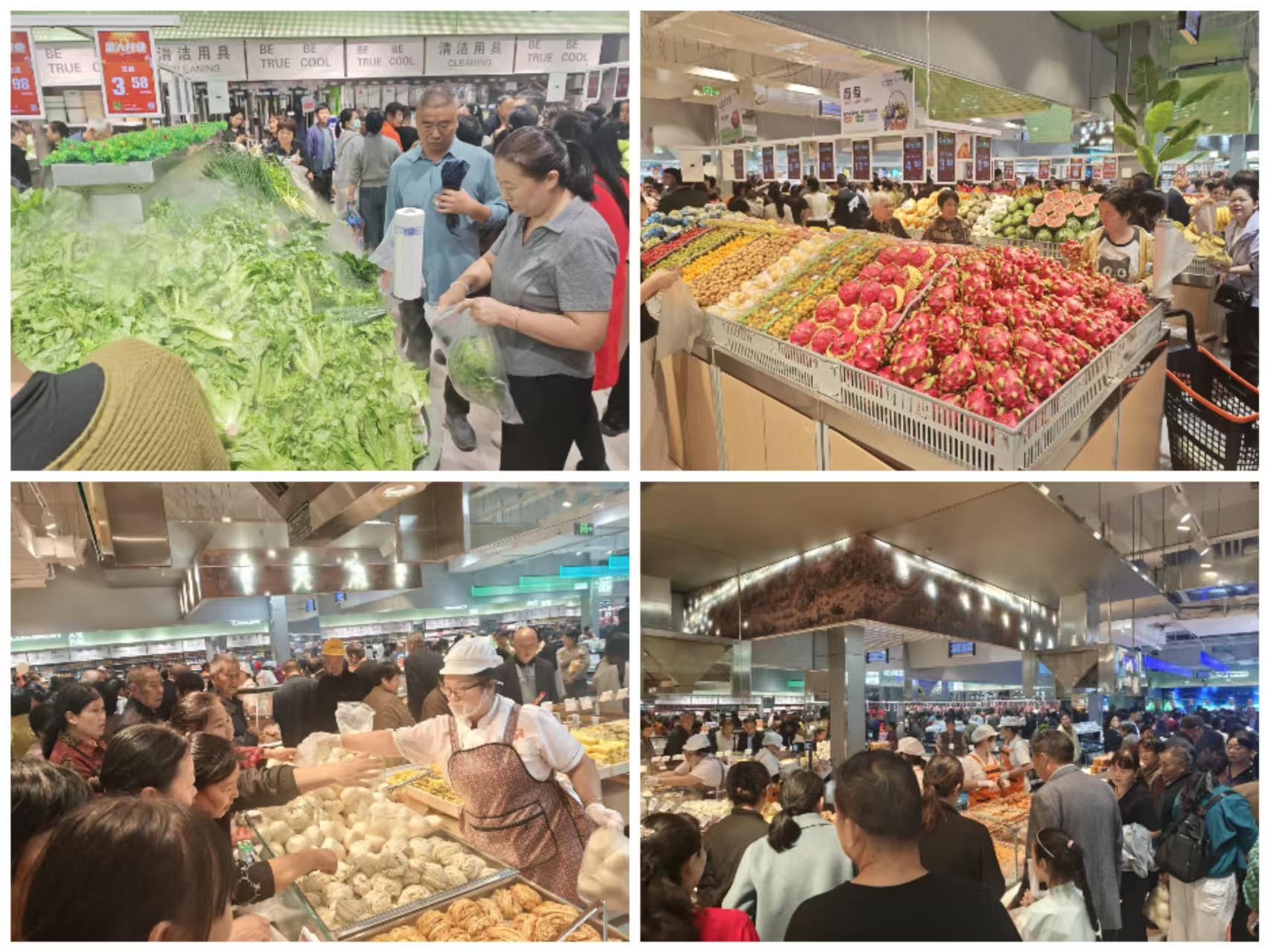 上午八点五十八分,伴随着激昂的锣鼓声和缤纷的礼花,超市大门正式开启,等候多时的顾客们满怀期待地涌入这座现代化的购物空间。超市内灯火通明,货架整洁,商品琳琅满目,尤其是生鲜区和熟食区,瞬间成为全场的焦点。新鲜水灵的瓜果蔬菜、品类齐全的肉禽水产、香气四溢的现场烘焙和美味熟食,吸引了大量顾客驻足挑选,称重台和收银台前很快排起了长龙。顾客们脸上洋溢着满意的笑容,纷纷称赞:“这里东西又新鲜又实惠,环境也敞亮,以后买菜购物太方便了!”