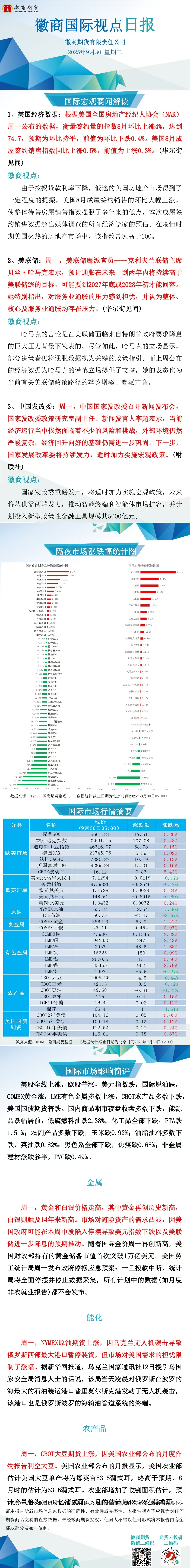 【徽商资讯】徽商国际视点日报(2025年9月30日)