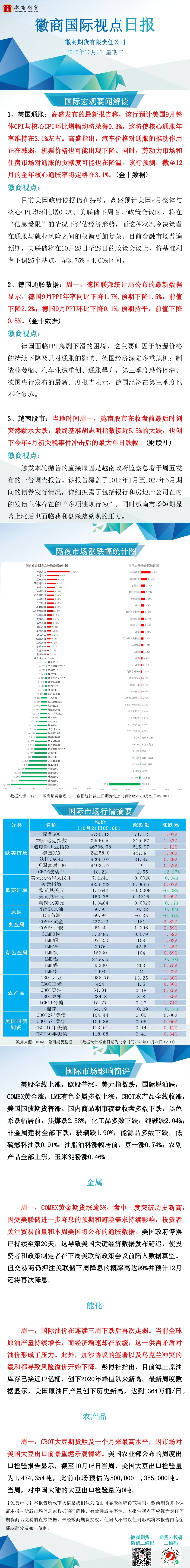 【徽商资讯】徽商国际视点日报(2025年10月21日)
