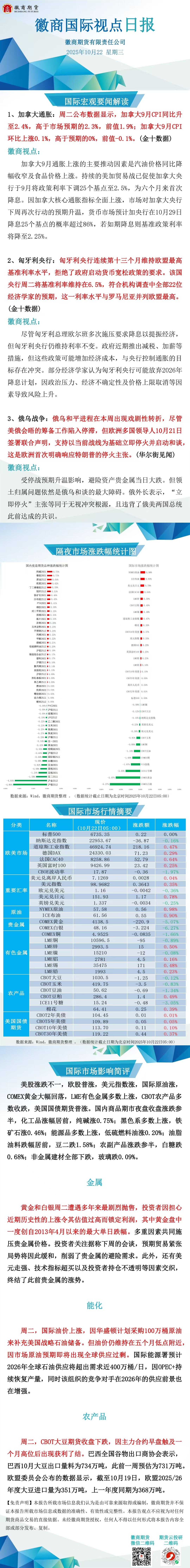 【徽商资讯】徽商国际视点日报(2025年10月22日)