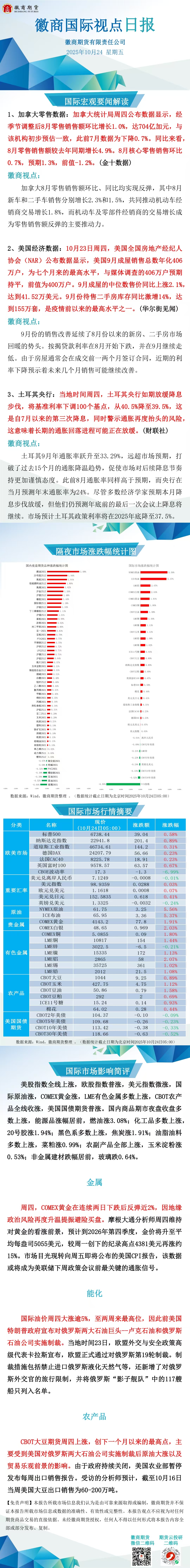 【徽商资讯】徽商国际视点日报(2025年10月24日)