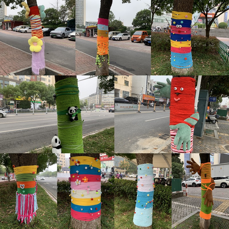 活动现场,小朋友、家长与党员志愿者热情高涨、默契配合。大家先完成色彩斑斓的毛线编织,再结合创意构思设计造型,最后细致地将编织品缠绕、固定在树干上 。片刻之间,秋风中略显萧瑟的大树,便披上了充满童趣与创意的“毛衣”,成为街区一道兼具美观与温度的独特风景线。