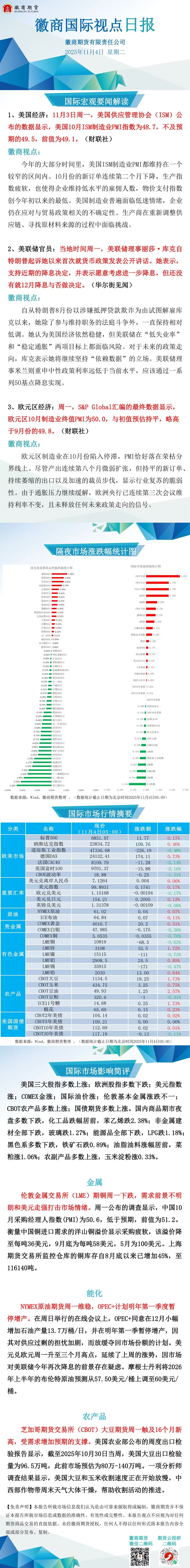 【徽商资讯】徽商国际视点日报(2025年11月4日)