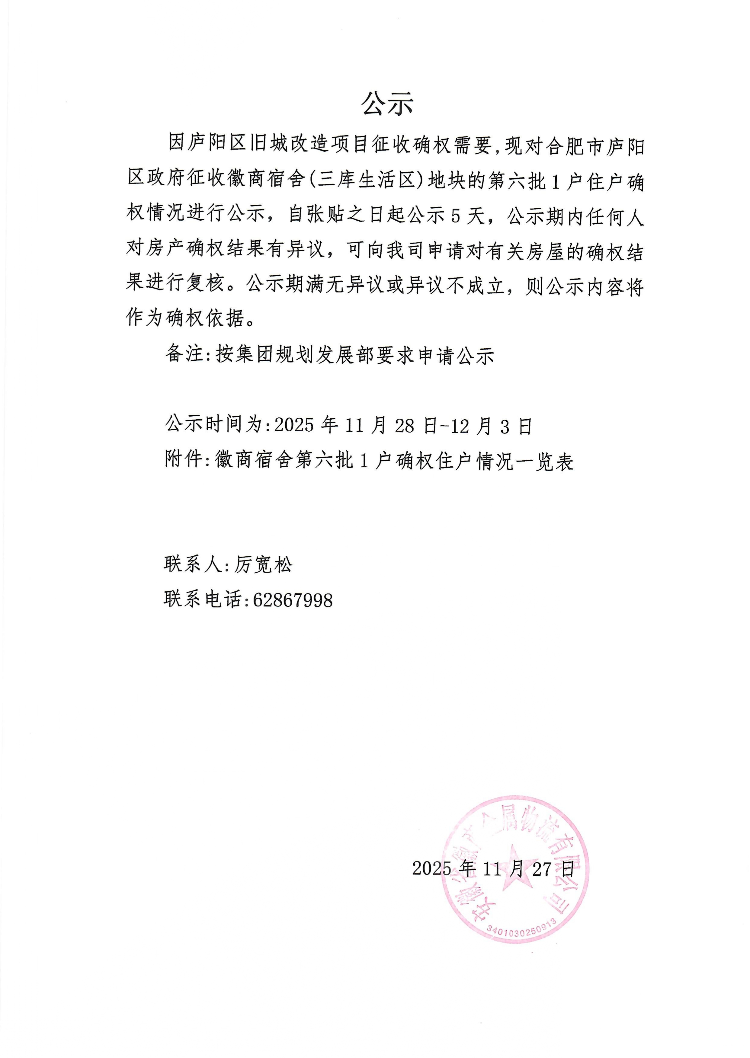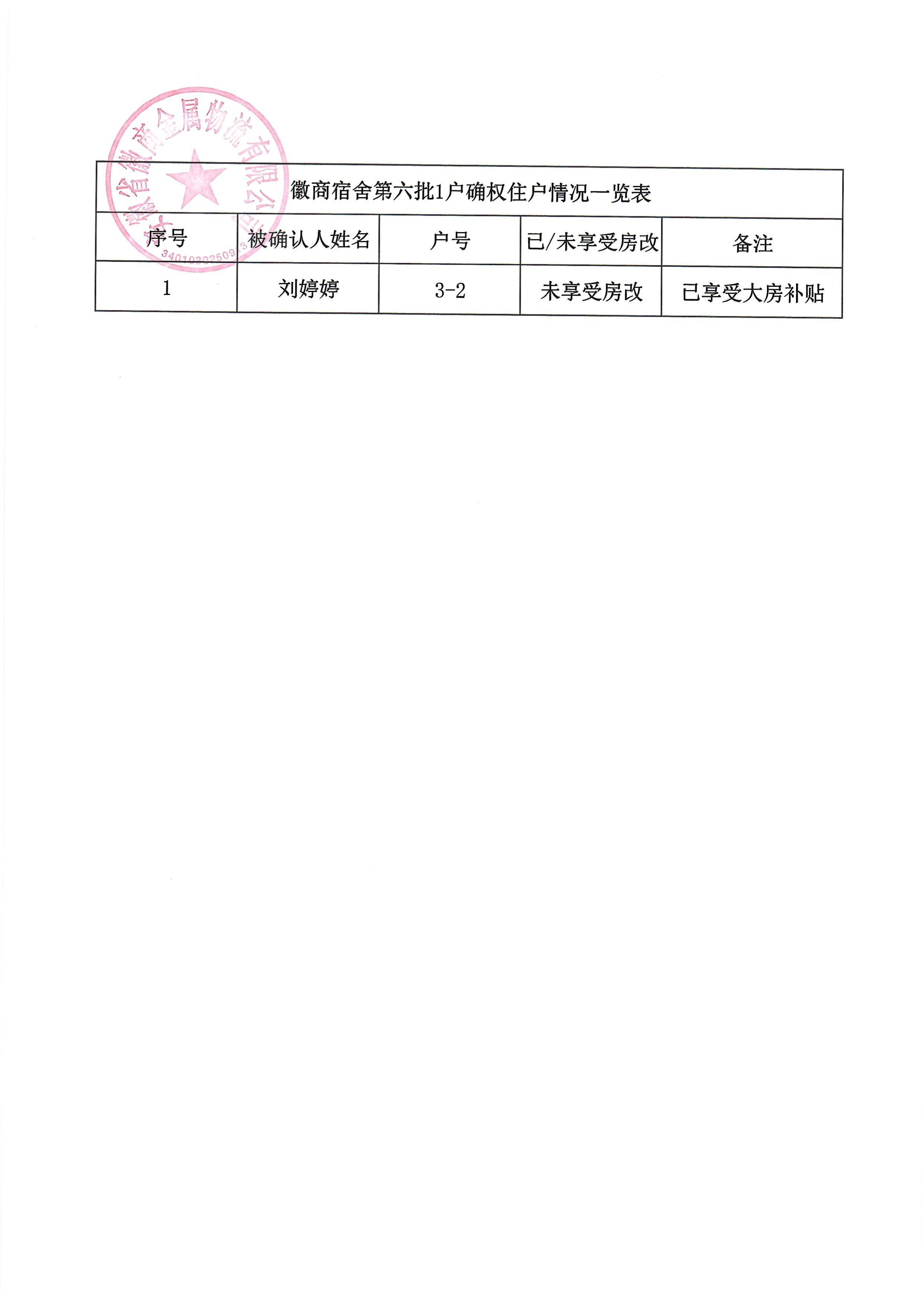 徽商宿舍(三库生活区)地块第六批1户住户确权情况结果公示