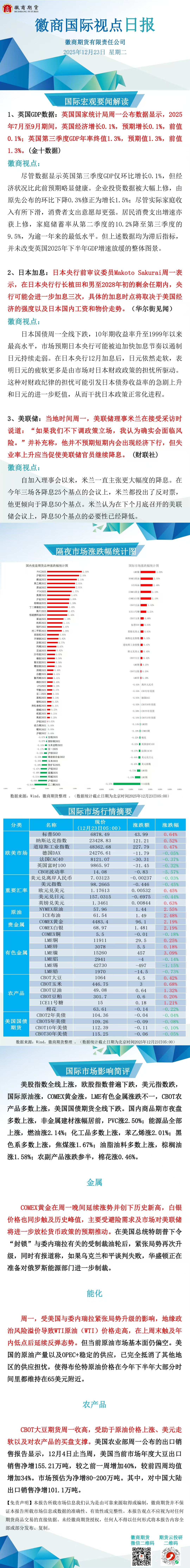 【徽商资讯】徽商国际视点日报(2025年12月23日)